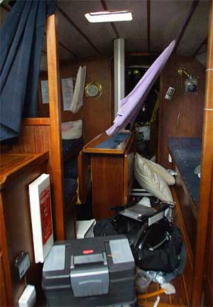 CHAOTIC: With waves from 5 to 8 metres high, most things on board are thrown around. Here from a relatively calm moment after the rescue vessel has started towing us. Check out the angle on the towel!