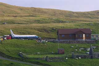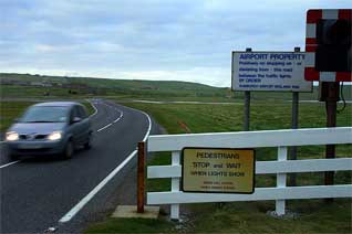 HONK AND GO: The airport at Shetland is something specia. The road goes straight across the airfield, and there is no gate. Only a polite sign telling people not to drive onto the airfield when the amber light is on.
