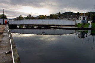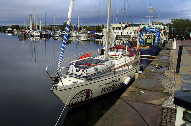 SAFELY BERTHED: Underveis safely berthed in freshwater for the first time in her 20 years. Here we are waiting to enter the locks into Loch Ness.