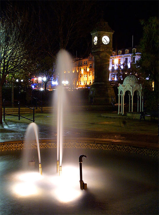 EVENING MOOD: The British have high standards of decorating their public areas. This fountain is situated just outside the marina were we were berthed in Bangor, near Belfast.
