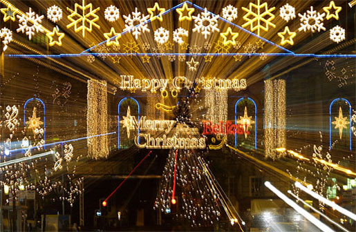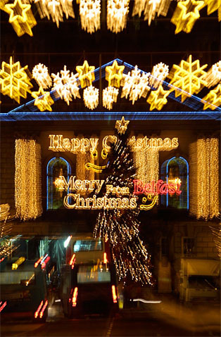 CHRISTMAS DECORATIONS: The Christmas decorations were lit already on the 21st of November in Belfast, drawing thousands to the ventre. It reminded us of Christmas at home, except for the armed police standing on every street corner.
