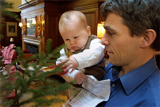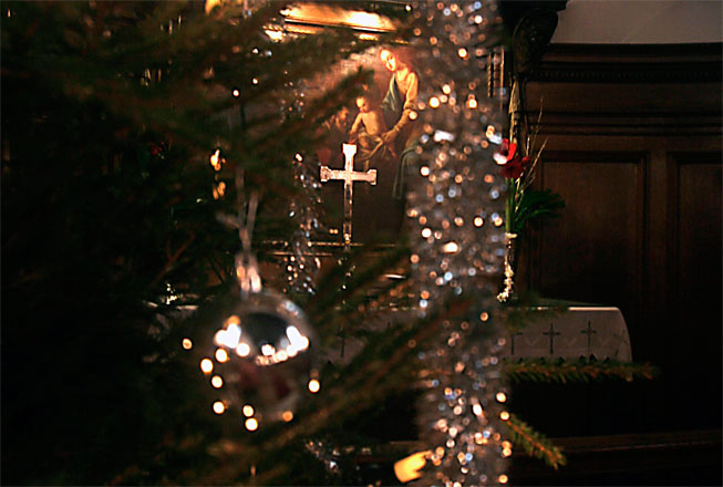 FINAL INSPECTION: Little Magnus (8months) checks that the decorations are all ticketi-boo before Christmas service.