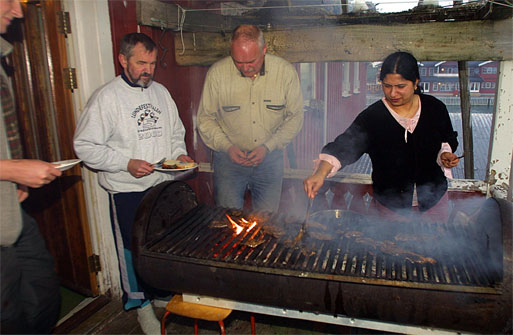 After the baptism, a traditional Mid-Summer Eves fire was lit, and whale meat was put on the barbeque, with coffee and cakes for dessert.