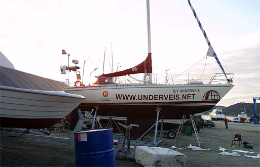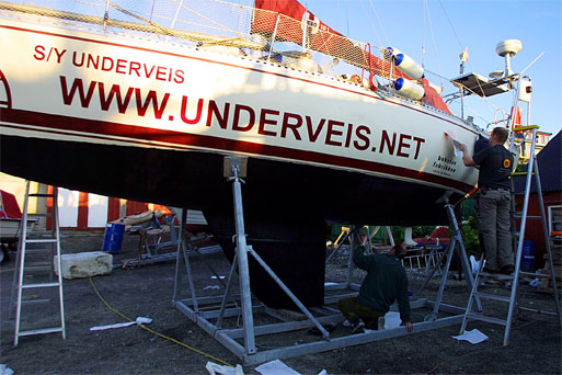 We are now in the last rounds of preparing for our trip, and there is plenty to do. We feel that things are according to plans, but the days are too short for us, anyway. Last weekend we sailed to Bodø and had our boat taken on land on the very modern and up to date facilities of Jakhelln Båt AS on Friday afternoon. They also provided us with paint and everything we needed, at very favorable prices. We noted that the hull is in very good shape, and that there was very little algae to be found, even though she hadn’t been on land for a year and a half.
