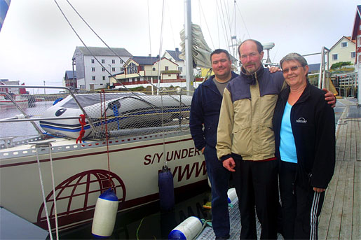 We had had very favorable winds all the way from Rost, with a gale pushing us southward pretty much all the way to Smola. But as we spotted Smola in the horizon, the wind died out. We started drifting for ours, and the the fog came. We started up our trusty engine and went the last few miles into Veiholmen harbor. Our friends Anton, Odd Arne and Marilyn came out in their fishing vessel and guided us in, something we are very grateful for indeed. The harbor inlet at Veiholmen is VERY narrow!