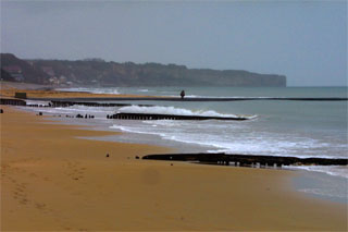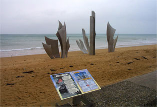 Still, it was to take almost a year before Hitlers Germany was brought to its knees, and the allied war machine could finally stop. By then, Hitler had committed suicide, more than 200,000 western allied soldiers had lost their lives, and more than a million German and two million Soviet-Russian soldiers had died along with an unknown number of civilians on both sides. All of this feels remote as we stroll along te beach at Omaha Beach, even though a monument and some posters with information about the operation can be seen.