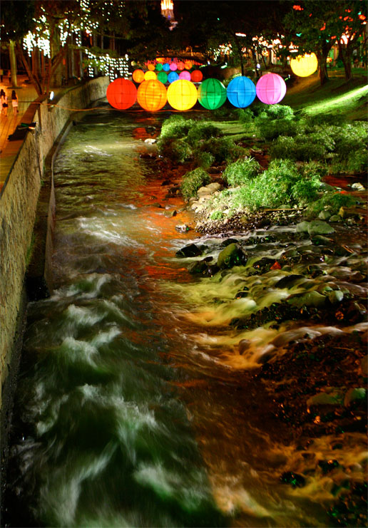 CHRISTMAS TOWN: Cali is considered the Christmas town in Colombia. Here they celebrate the longest, and decorate the most. It is also known in all of South-America as the city with the most beautiful women. Here from the river that flows through it.