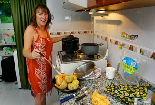 YUMMI: Lillian prepares the potatoes for the Christmas steak. It tasted fantastic with a few local twists, and a marvelous fruit cocktail for dessert.
