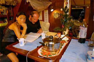 ON BOARD: Some Christmas celebrating below decks, with Runes uncle Arvids Christmas tree, Christmas glogg - and Mariana, who we regrettably had to leave behind for the next circumnavigation we make.