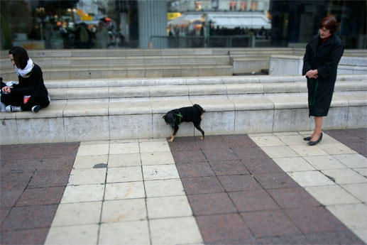 TAKING A PISS: Even in Paris, the dogs have to do their business, marble streets or not.