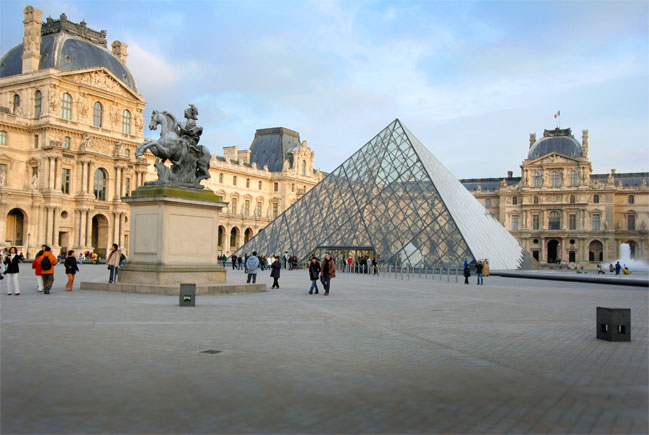 LOUVRE: The museum in Louvre is the largest museum building in the world, and very beautiful. The pyramid at the centre of the picture has been immortalized in the book "The Da Vince code" as the place where Maria Magdalene is buried.