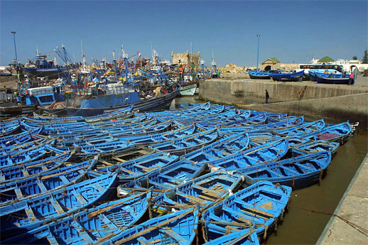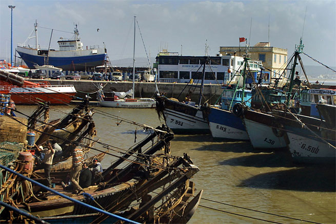 One of the biggest mistakes made by travellers and yachtsmen in countries like this, is giving bribes to those asking for them. In this way, they contribute to upholding the system of corrupt regimes. If everybody says no, a large step forward will have been taken in the struggle against corruption and “gift cultures”. This is not only valid for Morocco, but also in many other countries where this is rampant. The harbour itself in Safi was not very fit for sailing yachts. Swell, difficult access to fresh water and diesel, and fishing boats steaming back and forth at too high speeds. But we managed to shower and eat a good dinner at the hotel Farah, we bought new provisions, wrote postcards and went walking in the city. And we met Jens and Sandra from Germany on their boat “Hummel”, two very nice people. We sailed together to the port of Essaouira to the south, where we arrived in the middle of the night.