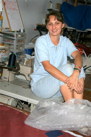 THE SAILWOMAN: Ludmila from Russia married and moved to Las Palmas some years ago. Se has sown us a new bimini and side panels, and made some repairs. She always smiles!