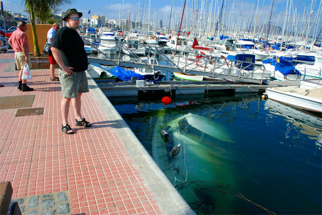 BEST WHEN BERTHED: Just arrived in Las Palmas, and we are checking out the marina. Not very encouraging, to put it mildly. And it was going to get worse, a lot worse. But at least the weather was fantastic!