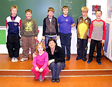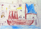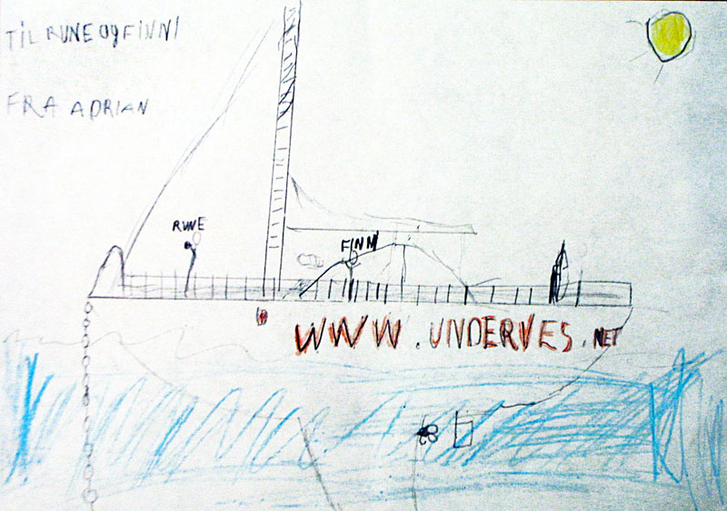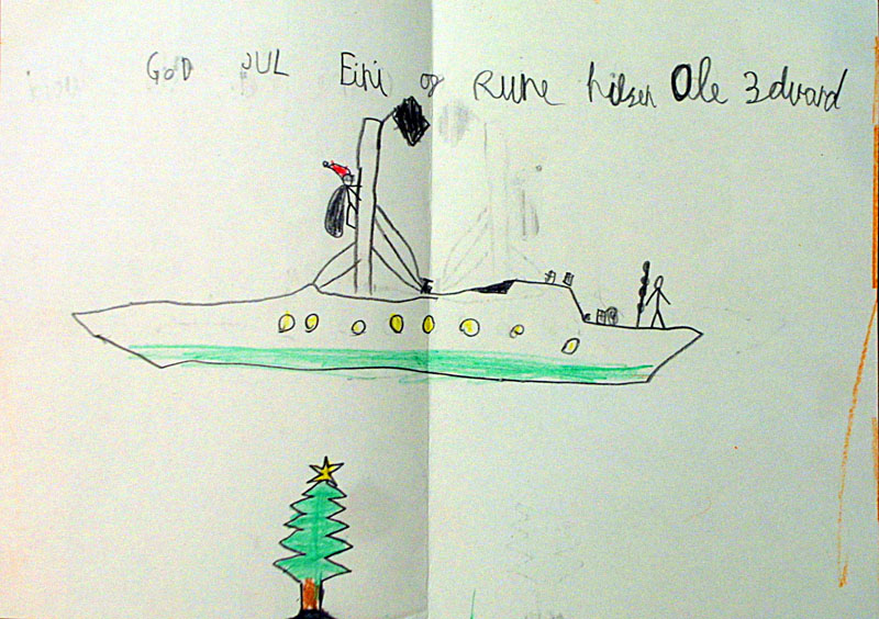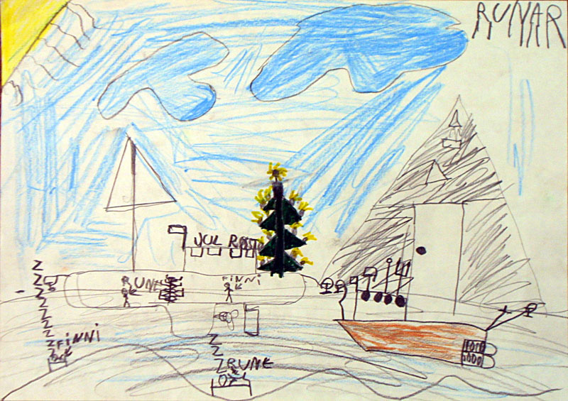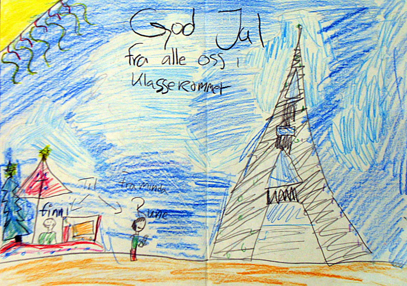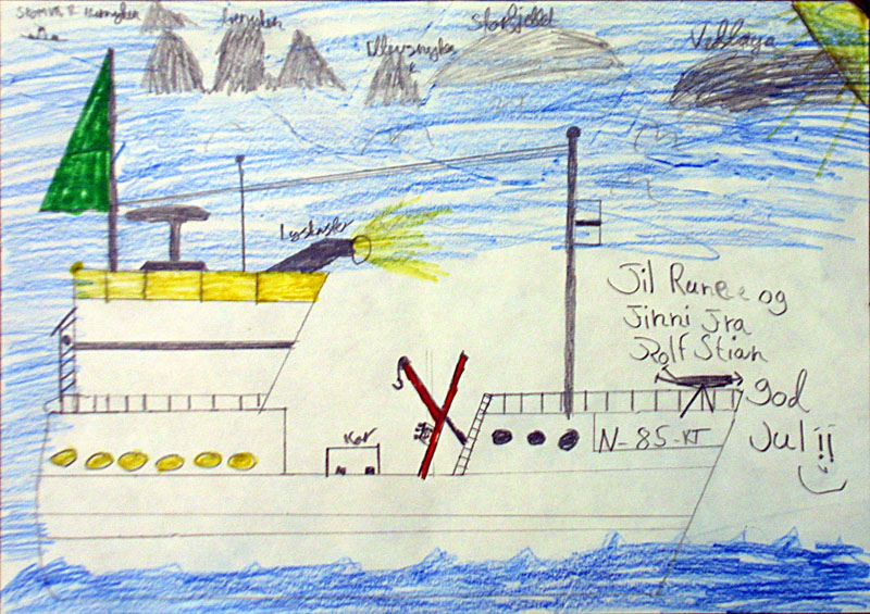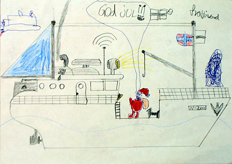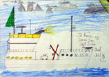 These wonderful drawings were drawn by the pupils in 5th grade at Rost Elementary school, and posted to us in Paris as a Christmas surprise. These pupils have adapted our voyage to be their project in geography class for the next three years. Click on each drawing for a full version.