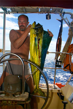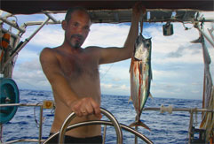 Nord for Fiji er det et havbunnssystem med dybder som strekker seg fra over 3000 meter og helt opp mot bare noen titalls meter på grunnene. Dette gir grunnlag for svært rike fiskerier, og vi på Underveis, som tidligere bare har hatt sånn passe fiskelykke, ble plutselig storskippere. Hver dag kunne vi dra opp en ny delikatesse, tunfisk, barracuda og mahi-mahi fant sin vei ned i gryta. Det er jo dessverre altfor mye mat i en slik fisk for to mennesker, så vi skjærer ut de beste stykkene til filet, strimler og henger sporbitene til tørk i targabøylen og resten må vi dessverre kaste til haiene.