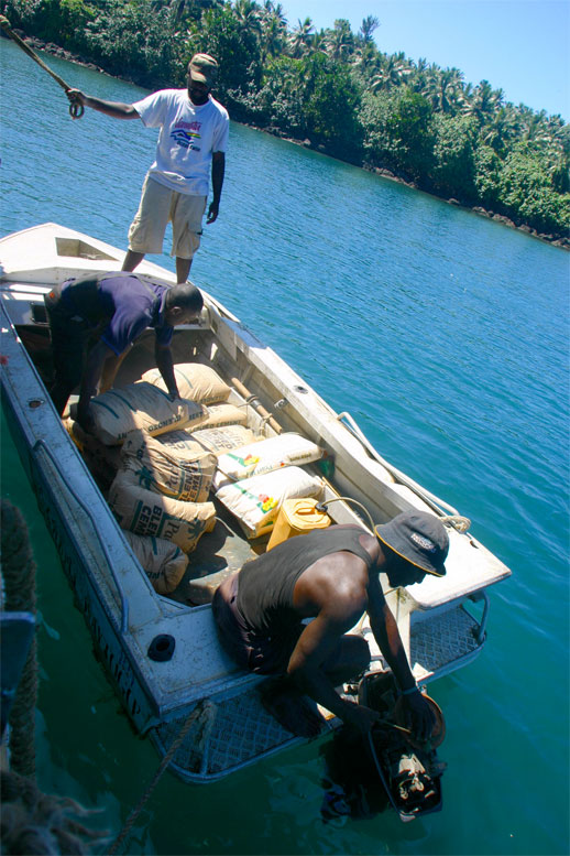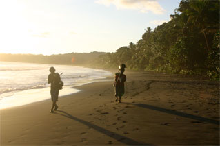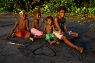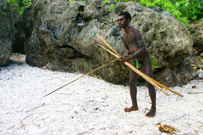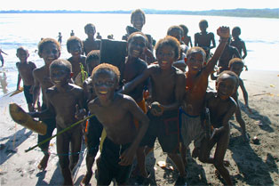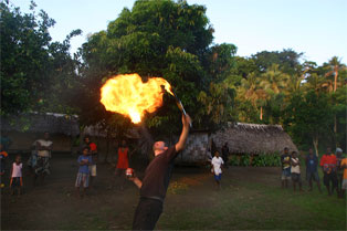 Om kveldene holder Finn Olav flammeshow, til stor begeistring for stor og liten. Vi forteller historien om Draugen, Marmælen og hulemaleriene i Helvete, mens de forteller oss om sine lokale tradisjoner. Det er også tradisjon å utveksle presanger i Stillehavet. Vi på Underveis gir fra oss en stor pose med fiskekroker, fiskeline, kladdebøker til skolebarna, en gammel kniv, hodelykt og mye mer. Når man har lite, setter man pris på det man har, og selv vannflaskene våre med sportstut blir vel mottatt. Etter halvannen uke blant avdankede kannibaler kan vi bare fastslå at gjestfrihet og et smil er gangbar valuta uansett hvor man en kommer. Dette er noe vi blir minnet på til stadighet. Med bagasjen full av minner, og i visshet om at vi ikke en gang ble gnagd litt på, setter vi kursen tilbake til Port Vila, Coca Cola og kald øl.