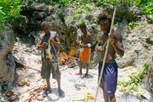 Etterhvert viser en annen høvding oss stedet der de kastet ben og hud etter kannibalfestene sine, og stedet der de kokte sine ofre. Stedet kalles ”Nakamal”, noe som betyr ”for de innvidde”. Vi er ikke innvidde, men når vi er i følge med høvdingen er vi trygge for åndene som beskytter Nakamal`en. Tilberedningen var enkel. Etter at offeret var klubbet ihjel, ble armer og ben stykket opp, og alt ble lagt i en jordovn kledd med palmeblader. Der ble kjøttet kokt til det var gjennomkokt. Med ben, hud og hår.