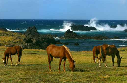 # Påskeøyas historie er kjent fra omkring år 400 e.k. De første nybyggerne kalte øya for Te Pito O Te Henua (Verdens navle). De bygget opp en fremstående og kompleks sivilisasjon på øya totalt isolert fra omverdenen.