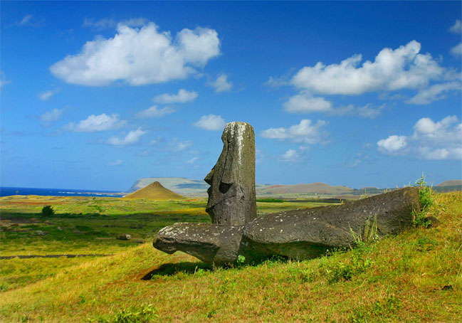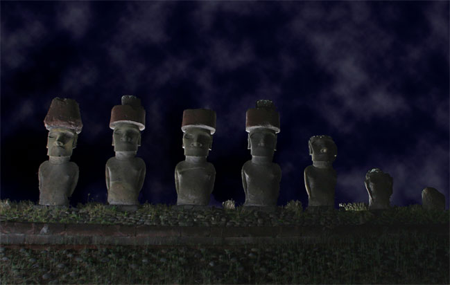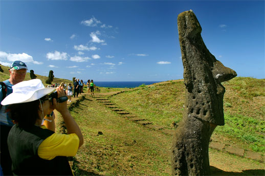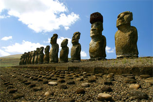 # Statuene på øya er opptil 13 meter høye og veier 60-70 tonn. De kalles moai og de fleste er hugget ut av stein fra "Rano Raraku" Rano Raraku. Det er mange teorier om hvorfor statuene ble laget, de mest utbredte teoriene er at de ble reist til ære for innbyggernes forfedre eller viktige levende personer.