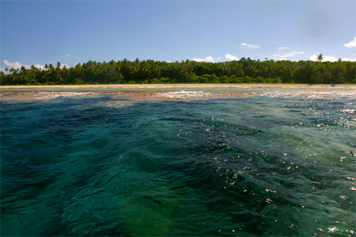 REVET: Revet rundt Swains Island er ubrutt, og det finnes ingen lagune. Båter som besøker, må derfor satse på å ligge for anker på den smale hyllen av land rett utenfor revet, eller drive for vær og vind mens de er der.